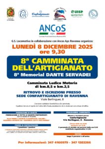 Lunedì 8 dicembre 2025, con partenza e arrivo presso la Sede provinciale di Confartigianato, è in calendario l’ottava edizione della Camminata dell’Artigianato – 8° Memorial Dante Servadei. Si tratta di una ‘camminata ludico motoria’ di 8,5 e 2,5 chilometri, organizzata da G.S. Locomotiva e Confartigianato. - MOSAICI SU CARTA DA RAVENNA A PARIGI