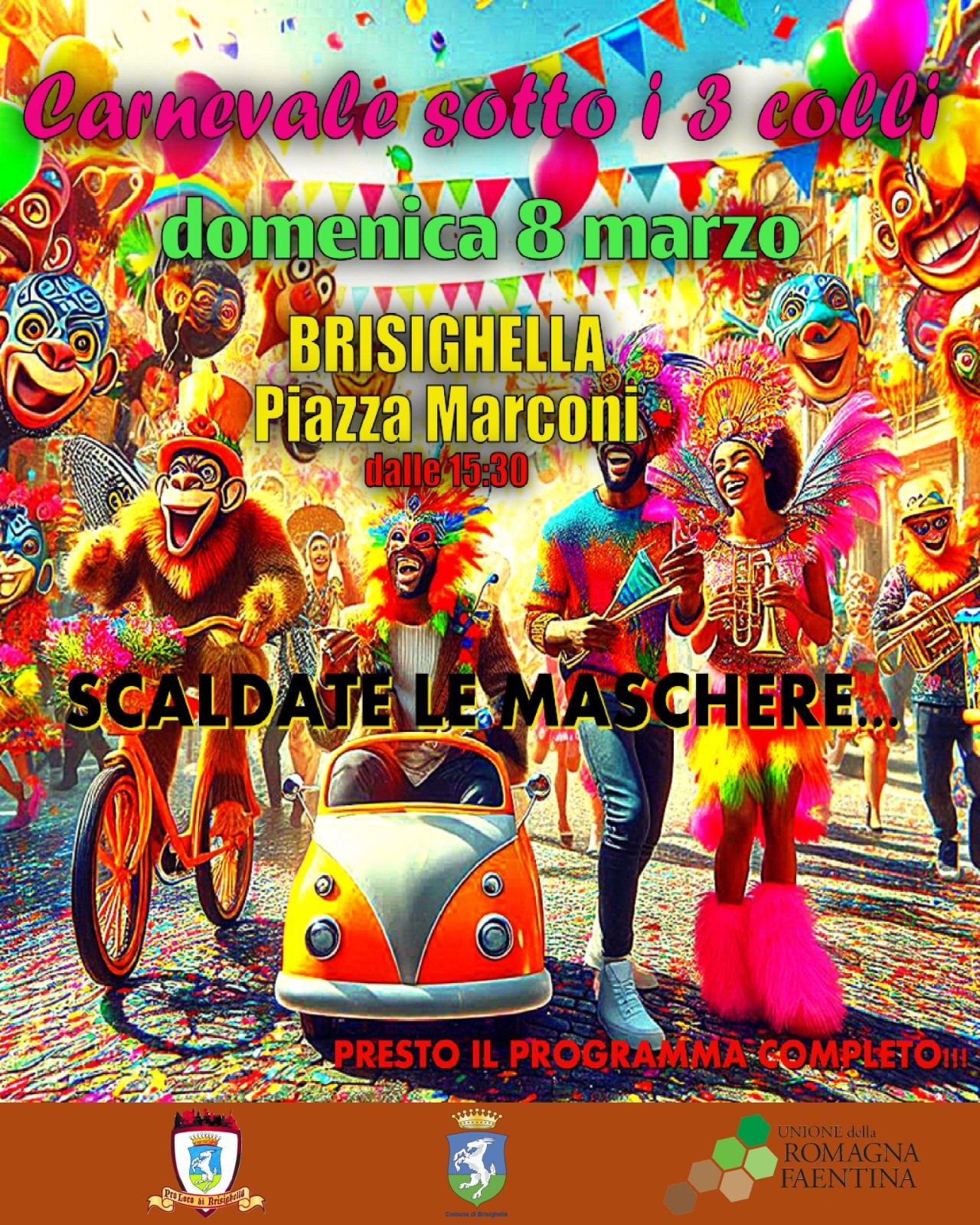 Il Carnevale dei 3 Colli torna a Brisighella l’8 marzo con una grande festa comunitaria dedicata a maschere, tradizione e partecipazione locale. L’iniziativa coinvolge realtà e associazioni del territorio come la Pro Loco Brisighella, i Tamburi di Brisighella, i Sancti Ruffilli, le Scuole Olindo Pazzi, il maneggio Cà Stagneto e i Cavalieri dei Calanchi, insieme a famiglie, bambini ed esercenti del borgo. - FUORI CENTRO OGNI LUOGO PUO’ FARSI TEATRO